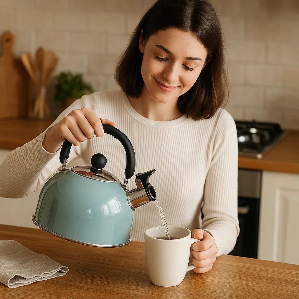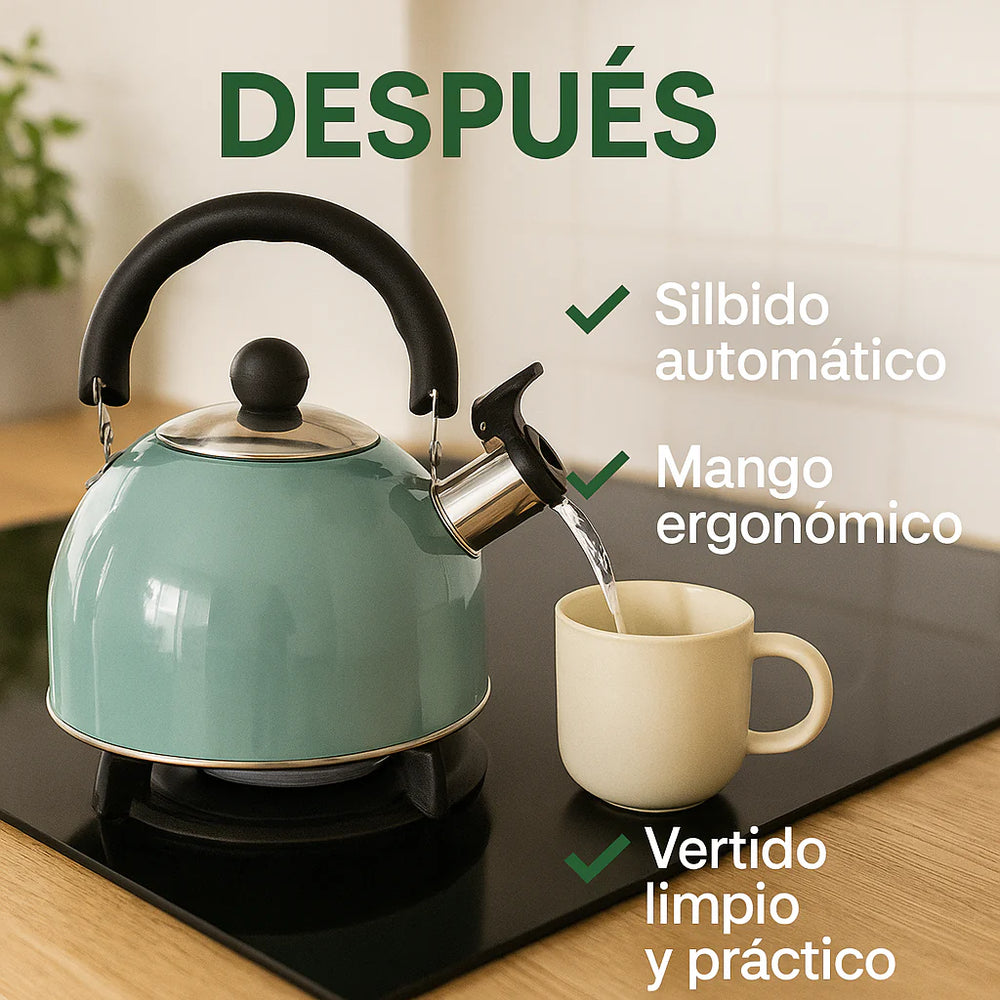 Si alguna vez se te evaporó el agua por olvidar una olla en el fuego, sabés lo peligroso y molesto que puede ser. Con nuestro Hervidor con Silbato de Acero Inoxidable, esa preocupación desaparece. Su silbido automático te avisa apenas el agua hierve, evitando accidentes y pérdidas de tiempo.